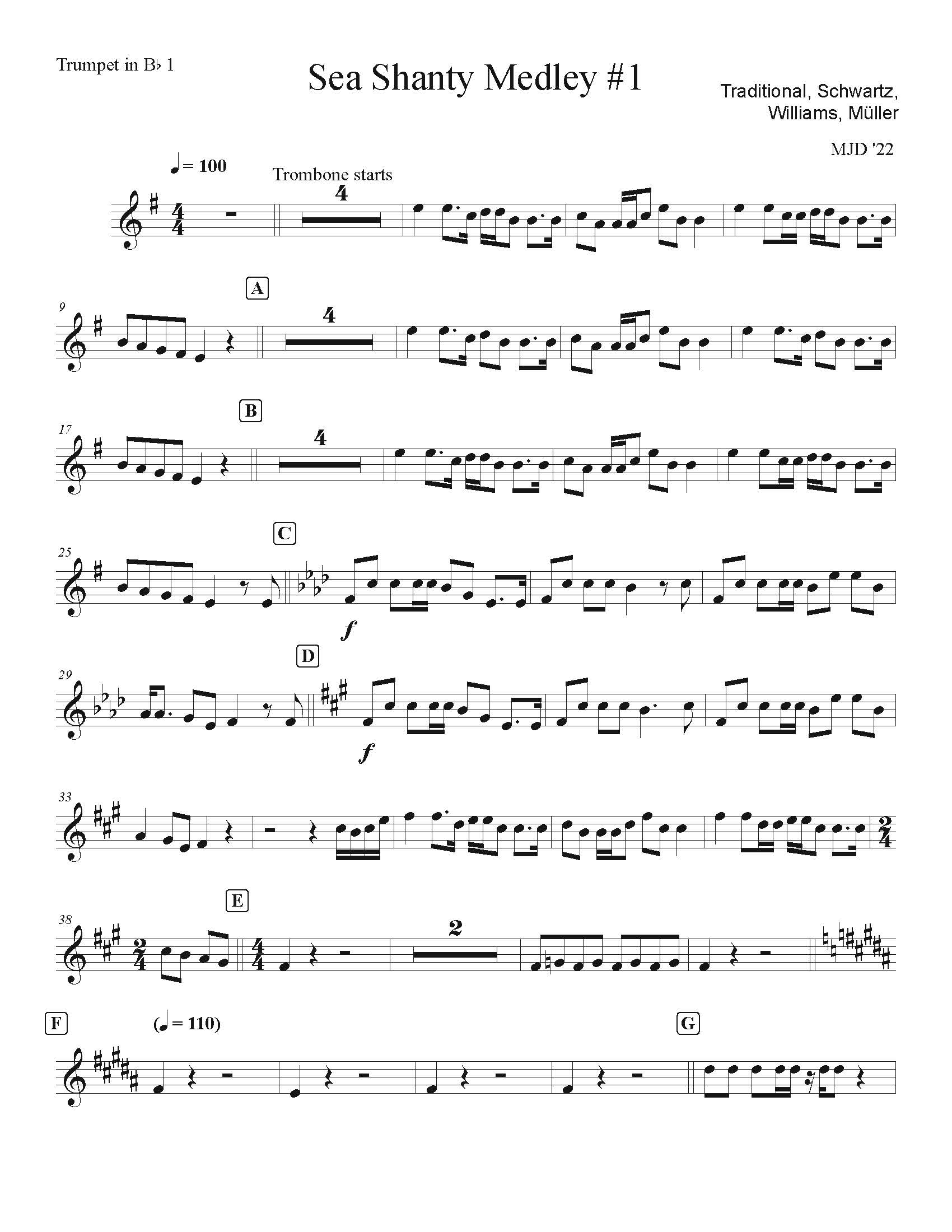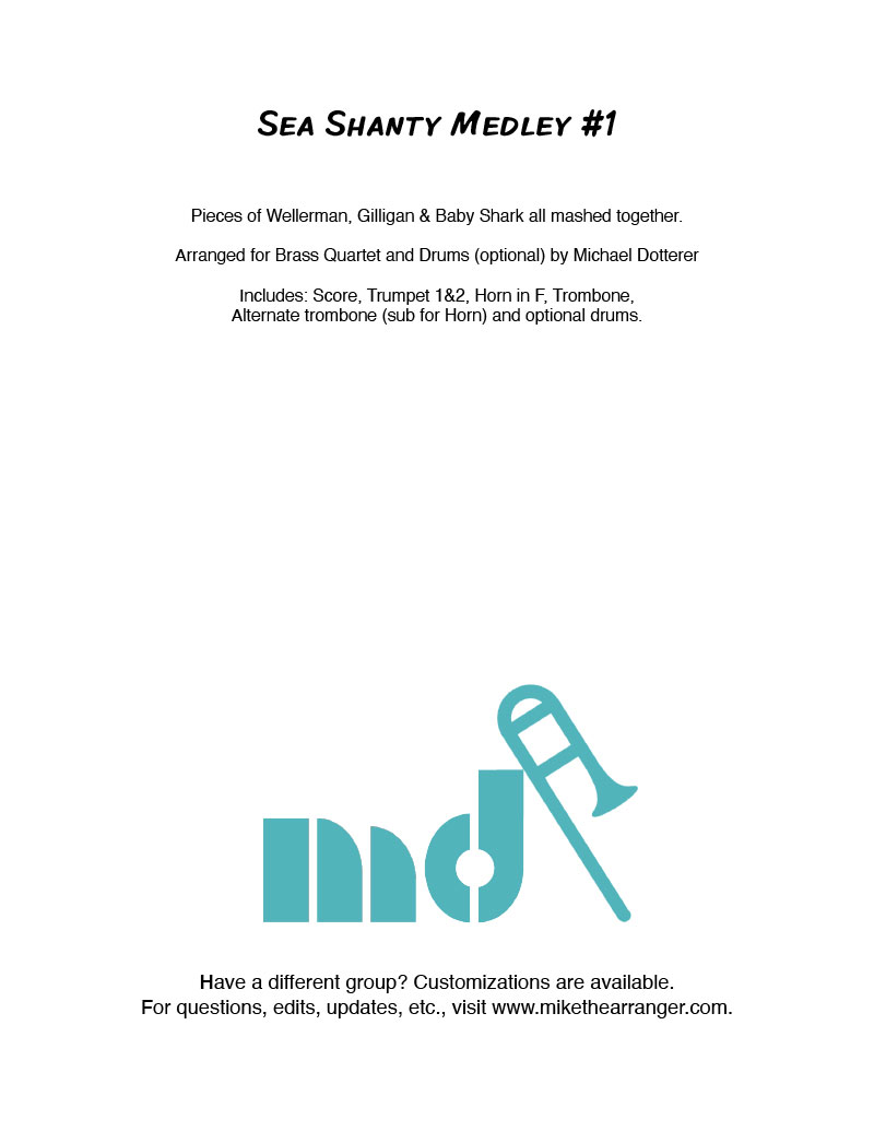 Pieces of Wellerman, Gilligan & Baby Shark all mashed together. Arranged for Brass Quartet and Drums (optional) by Michael Dotterer