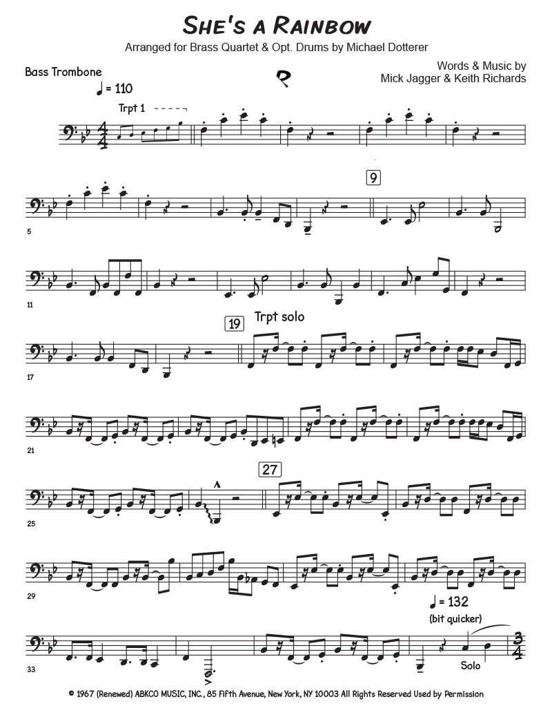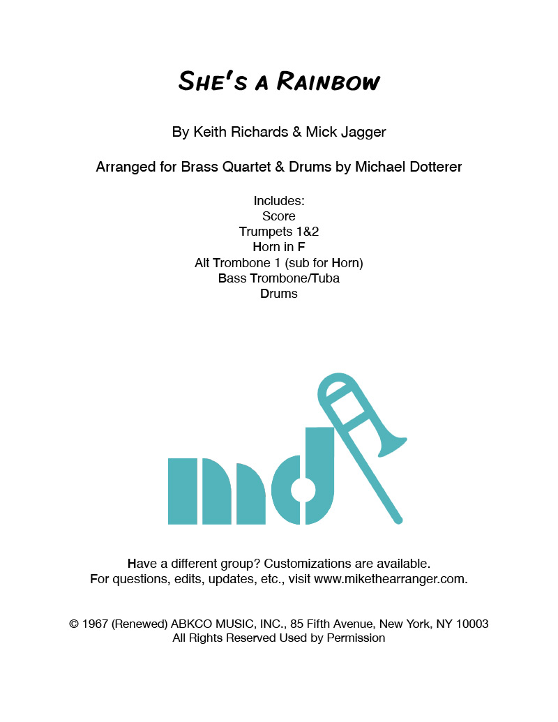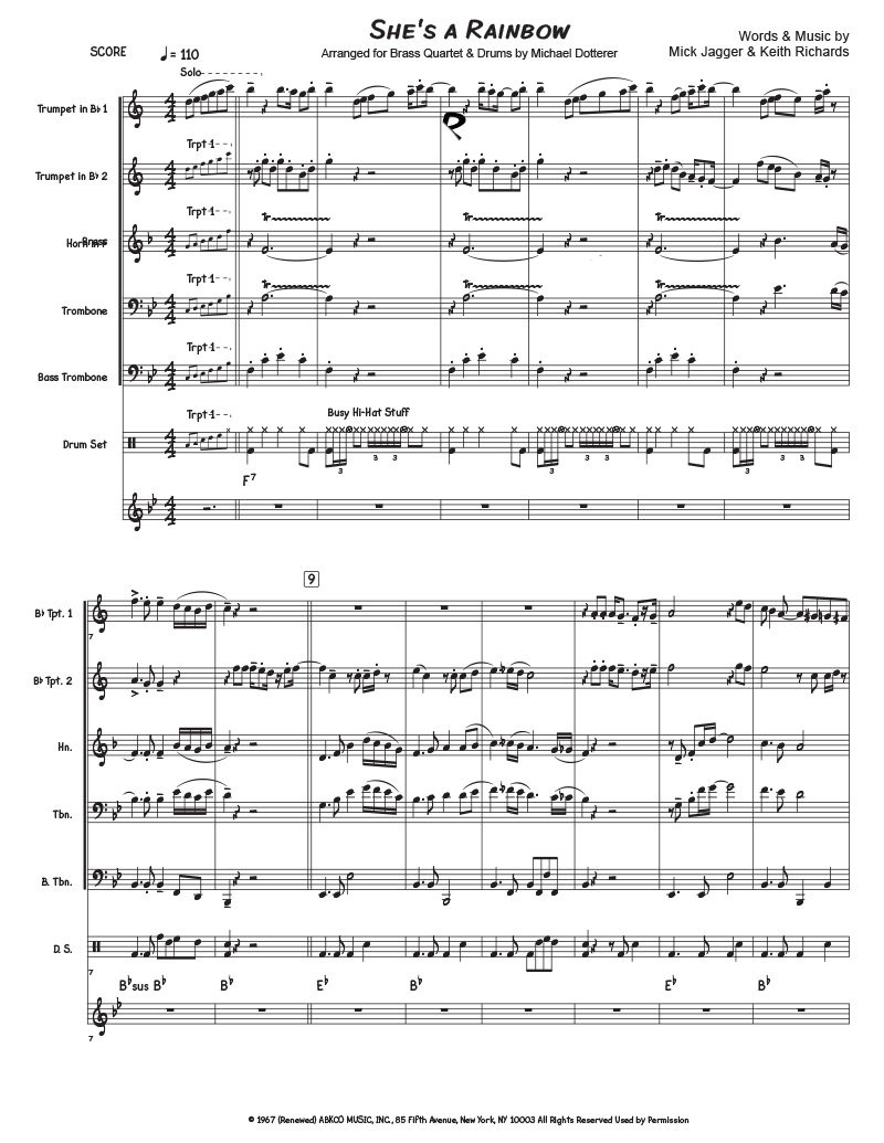 Rolling Stones classic arranged for Brass Quartet & Drums.